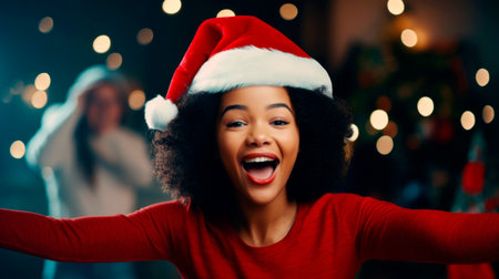 young girl enjoying christmas. AI generated. High quality photo