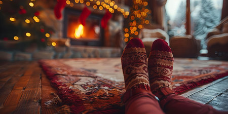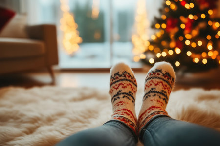 Close-Up of Feet in Snug Socks in a Holiday Setting