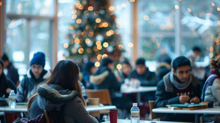 Indoor Winter Escape Amidst the frosty outdoors this defocused image focuses on the lively and festive atmosphere indoors. Groups of students are gathered around tables playing games