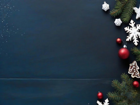 Christmas dark grunge horizontal background, top view created with Generative AI technology.