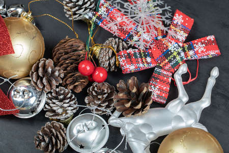 Bunch of festive decorations on dark background