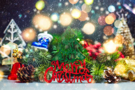 Xmas make by wooden block with Christmas ornament on nature background