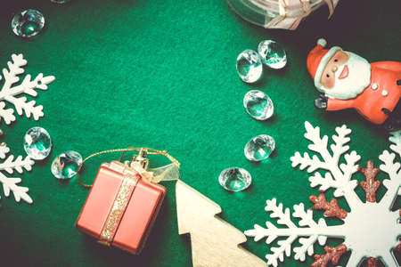 Merry Christmas and Happy newyear flat lay background on grunge white wood with copy space for your text. Vintage Retro.