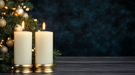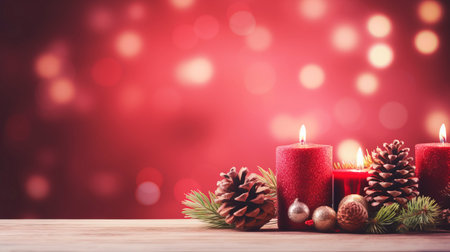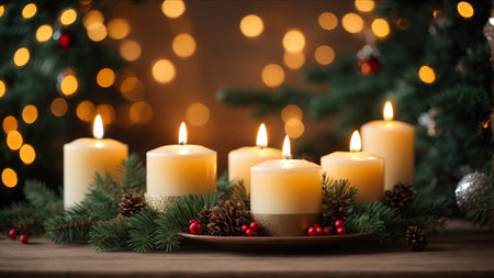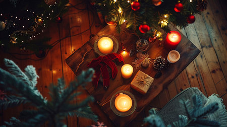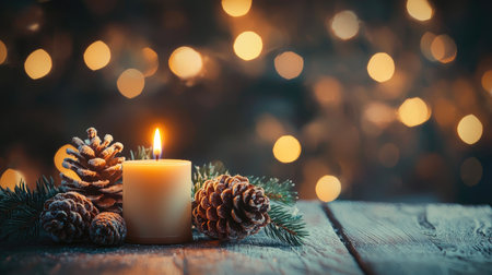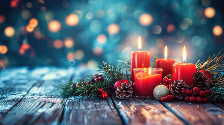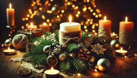 Magical Christmas Setting with Candles and Wood Background