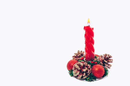 Christmas candle with decorations. Christmas background