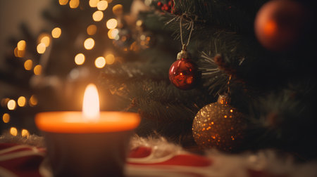 Cozy Christmas ambiance with candles and decorated Christmas tree