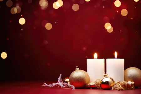 Christmas and New Year holidays background with candles and bokeh lights.