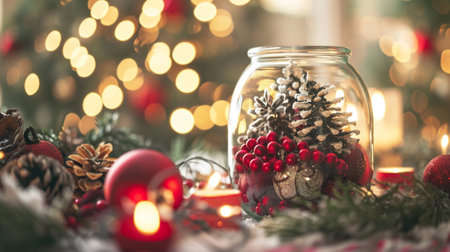 Merry Christmas and happy new year concept, Close up, Elegant Christmas tree in glass jar decoration