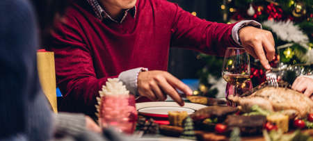 festive holiday dinner at restaurant. Night out with friends or family concept