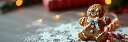 Delight in a charming scene of gingerbread cookies adorned with icing, surrounded by twinkling festive lights, evoking warmth and joy of the holiday season.