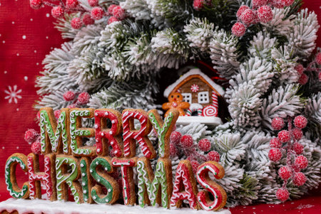 Christmas homemade gingerbread cookies and Christmas decorations. Cozy festive atmosphere.