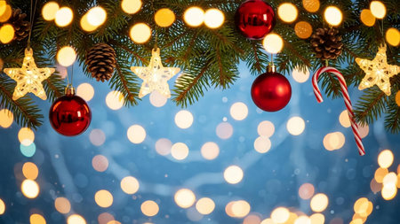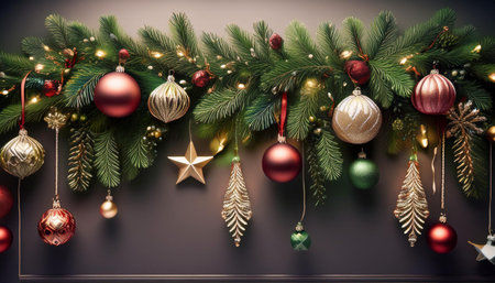 An AI generated illustration of a Christmas background featuring an array of traditional decorations