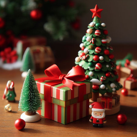 Santa claus and decorative items during the Christmas season.