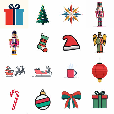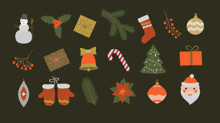 Set of colorful Christmas icons flat