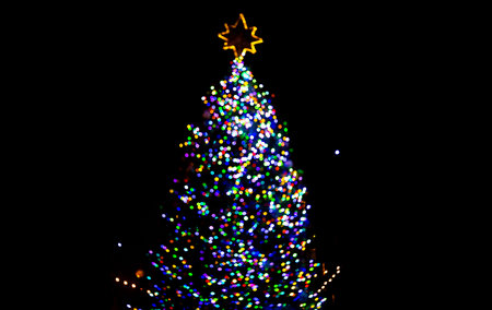 Christmas Tree Lights and Decoration Bokeh Blurred Out of Focus Background