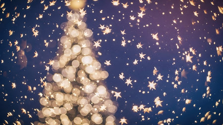 Sparkling holiday magic: blurred christmas tree with starry bokeh lights.