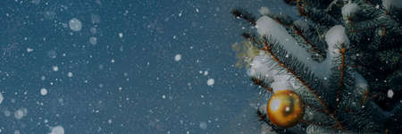 Christmas tree in winter forest. Christmas and New Year holidays background.