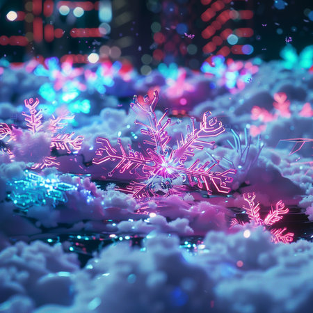Shiny snowflake decoration glows in winter night