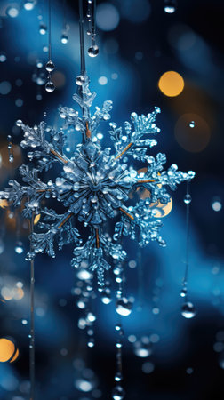 Holiday elegance: close-up snowflake on icy surface.