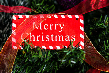 Merry Christmas sign hanging in the Christmas tree