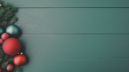 Festive holiday scene with fir branches, red ornaments, and soft lighting creating warm seasonal ambiance.