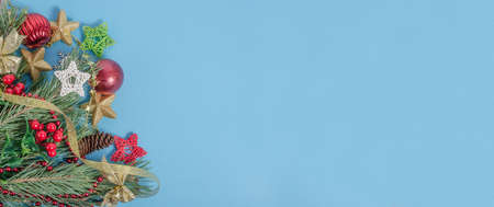Baner background. Christmas and new year festive composition on blue background with copy space for your text