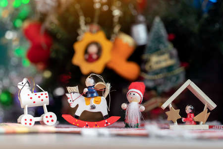 Wooden blocks of XMAS and many of ornaments for decoration in Christmas. The concept of Christmas