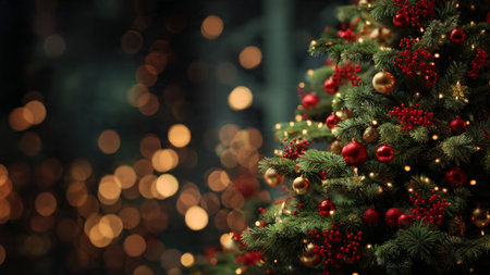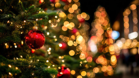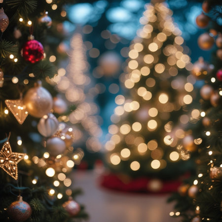 Warm glow of holiday lights on a beautifully decorated Christmas tree during winter festivities