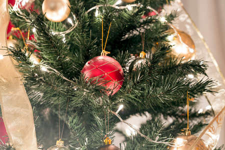 Closeup on Christmas tree decoration.Christmas and New Year concept background.