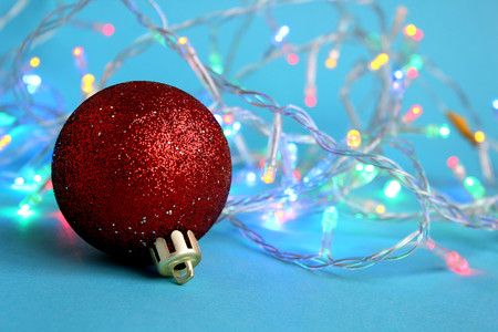 christmas ball on the blue background.