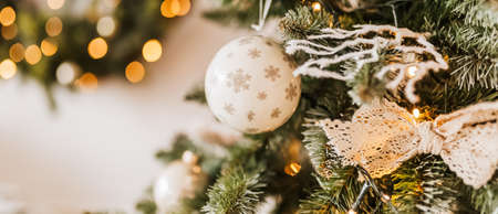 Closeup on Christmas tree decoration.Christmas and New Year concept background.