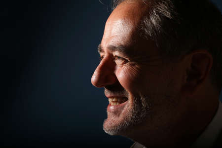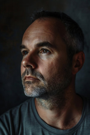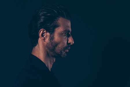Very Serious looking man with dark background Gently post-production using cross balance and contrast adjustment