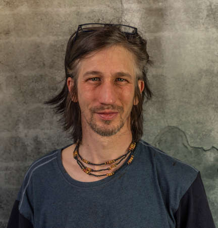 KUPYCHIV, UKRAINE - JANUARY 30, 2009: Close-up portrait of a unidentified bearded man posing at home