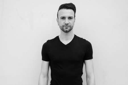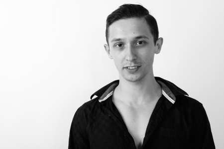 Portrait of a gay man - member of the LGBTQ community. Black and white photo. BW