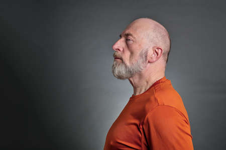 Senior Man. Close up portrait of an elegant senior man with grey hair isolated on black background.