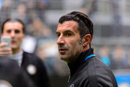 Milan - Nov 6, 2018: Luis Figo portrait. Friendly match Inter Forever - Barca Legends