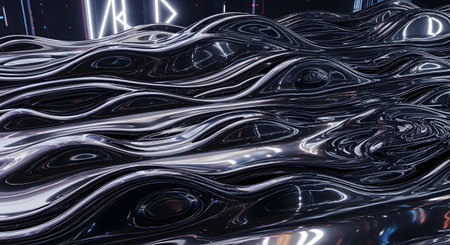 Reflective chrome texture showcasing sleek and shiny surface with captivating fluid patterns