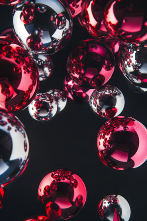 Vibrant rainbow bubbles reflecting light on a dark backdrop with prismatic effects