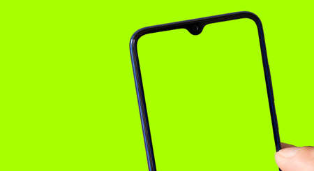 Smartphone with greenscreen. Mobile phone frameless design concept template.