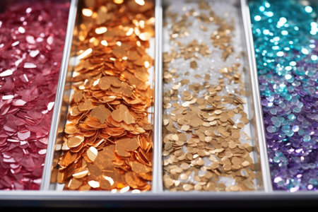 array of sequins and rhinestones on a tray, created with generative ai