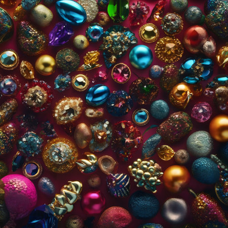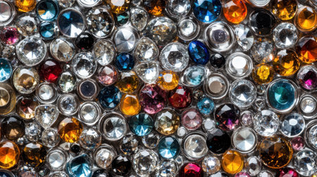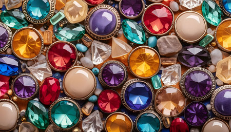 A stunning close-up view of colorful sparkling gemstones, showcasing a variety of shapes and sizes. This captivating image highlights vibrant reflections and intricate details, perfect for design and fashion projects.