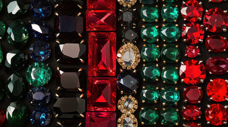 A captivating close-up of colorful sparkling gemstones in a luxurious arrangement, perfect for showcasing elegance and glamour in modern jewelry design.