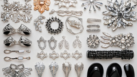 Discover an exquisite array of vintage jewelry pieces, featuring brooches, earrings, and hair accessories in stunning silver and black tones. Perfect for any stylish occasion.