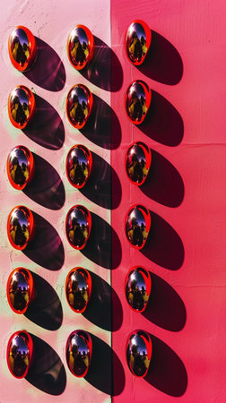 Captivating Collection of Glossy Pink Lips in Arrangement A visually striking and alluring still life depicting a repetitive pattern of glossy vibrant pink lips against a contrasting background