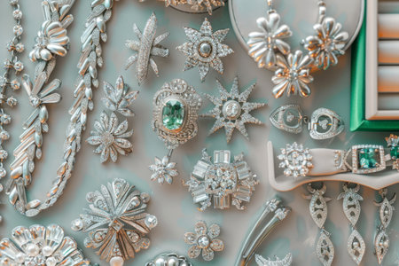 Elegant assortment of fine jewelry pieces displayed in a flat lay.