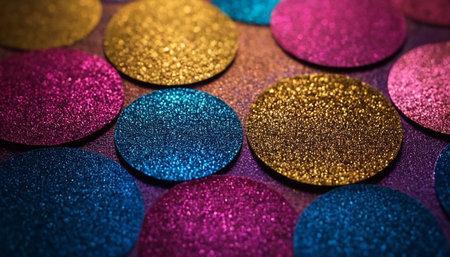 Shimmering sequins overlay texture with vibrant colors for creative projects