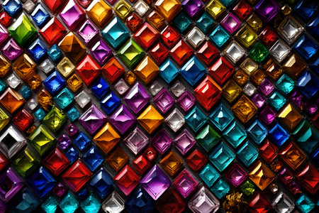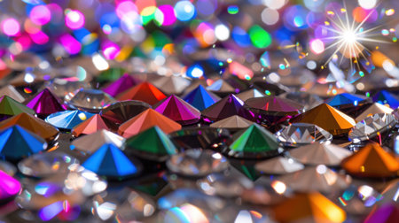 This captivating close-up showcases an assortment of colorful sparkling gems, reflecting a myriad of light and vibrant hues, creating an alluring visual impact.