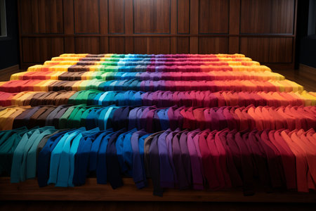 A Vibrant Row of Neatly Folded Colorful Shirts Generative by Ai.