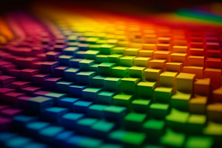 3D rendering of a rainbow colored background made of cubes with different colors