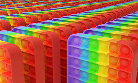 3d rendering. LGBT rainbow flag color brick block stack residential wall design background.